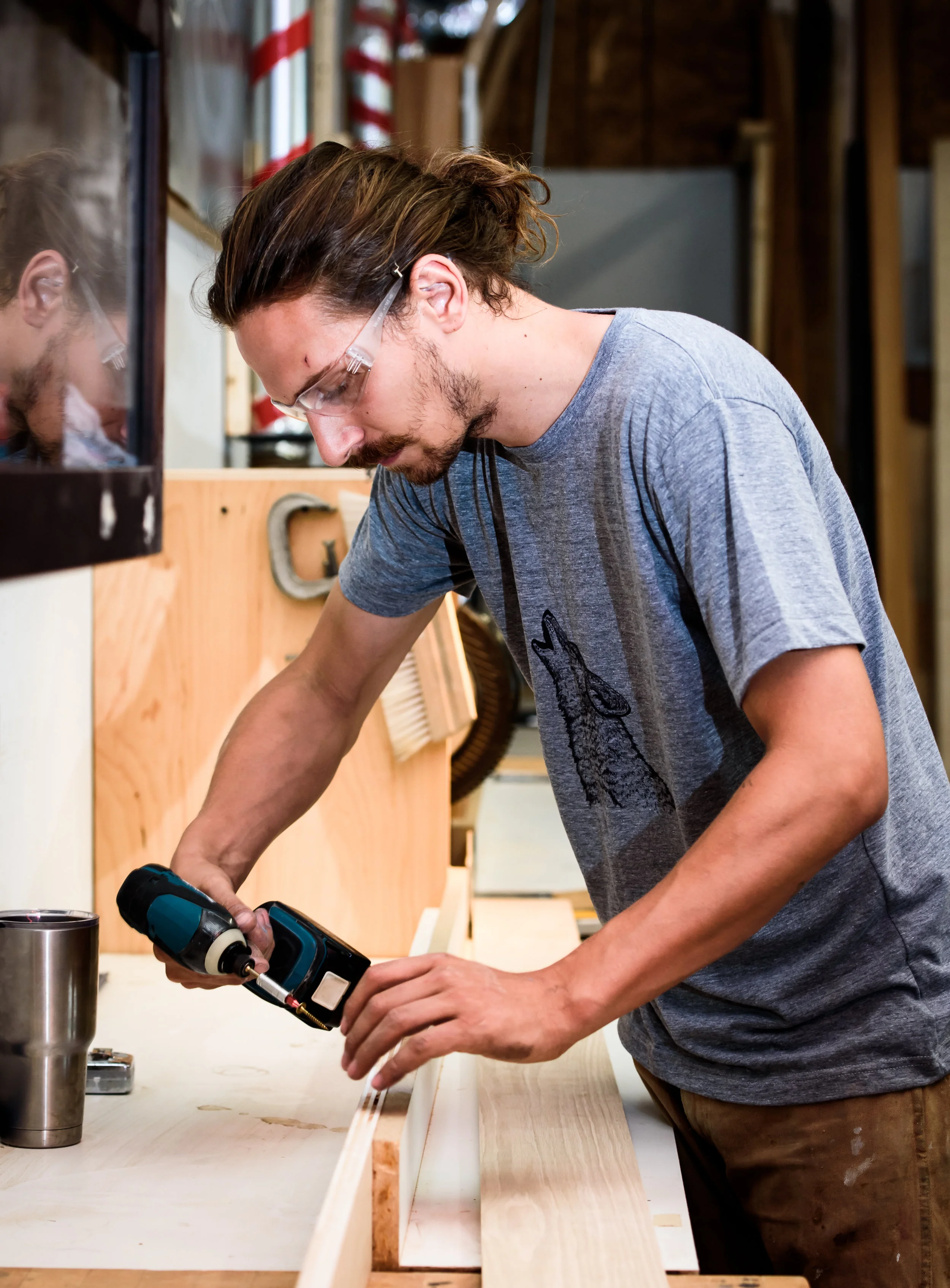 Joel uses his carpentry skills in the shop, ensuring materials are produced at the highest quality. He brings years of experience from the custom furniture industry.